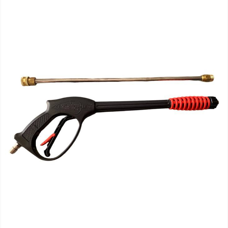 این مدل دسته کارواش و یا لنس مدل صنعتی 248 بار واقعی بوده و دارای قطع کن در قسمت گان یا همان دسته میباشد . این لنس صنعتی مناسب کارواشهای بسیار قوی و کارگاهی و کارخانه ای میباشد . مواد تشکیل دهنده ی این لنس با لنسهای دیگر در بازار بسیار متفاوت میباشد. ابتدای لوله نازل صنعتی نصب میگردد که بنا به خواسته و نیاز مشتری در رنگها و زاویه های گوناگون قابل استفاده میباشد که خوشبختانه در پنل ما بصورت نازل فیتینگی تکی و مجموعه 5 عددی موجود میباشد. . طول لنس 1100 سانتیمتر میباشد. جهت بخار داغ مناسب میباشد و تا 60 درجه سانتی گراد مناسب است . به همراه این لانس صنعتی 1 عدد نازل 25 درجه به شمای عزیز تقدیم میگردد روی لوله MADE IN ITALY حک گردیده . ورودی شلنگخور با 2 مدل وارد گردیده. مورد اولی رزوه3/8 و مورد دوم بصورت فیتینگی است که در صورت نیاز کوپلینگ برنجی را نیز میتوانید از کالاچی لند تهیه فرمایید.