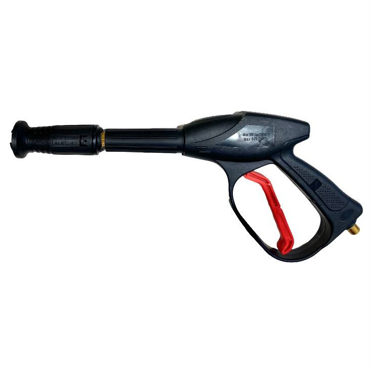 و باز هم نمونه ی دیگر از واردات کالاچی لند . لازم به ذکر میباشد که روی این دسته کارواش صنعتی 300 بار و 3000PSI و با تحمل 60 درجه سانتیگراد حرارت آب گرم حک گردیده و از آنجاییکه ما سعی مینماییم با مشتریانمان صادق باشیم این لانس مناسب کارواشهای نیمه صنعتی و خانگی میباشد و مناسب کارواشهایی است که تا 170 بار میباشند . در عین حال یکی از پرطرفارترین نمونه های وارداتی ماست . کوتاه و بلند شدن دسته از مزیتهای این لانس بوده و مناسب سرویس کاران محترم کولر میباشد . این دسته کارواش سه تکه و قطع کن دار بوده و از سه قسمت دسته و یا همان گان و قسمت لوله فلزی و قسمت نازل متغیر جهت پاششها با زوایای مختلف ساخته شده است. از این دسته کارواش هم میتوانید با دسته کوتاه استفاده فرمایید و هم با دسته بلند که این مدل دو کاره بسیار جالب و کار راه انداز میباشد.اگر سه قسمت لنس و تفنگی روی هم بسته شوند طولی برابر با 78 سانتیمتر دارد . جنس لوله ی آن استیل سبک میباشد .