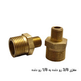 مغزی ۳/۸ رو دنده به ۱/۸ رو دنده برنجی بسته 2 عددی