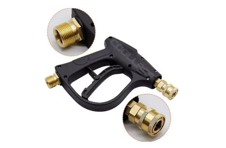 لنس و تفنگی مدل کوپلینگی رزوه شلنگخور بزرگ با لوله سرکج نازل سرخود۲۰ سانتی ۱۰۵ درجه با یک عدد نازل اضافی